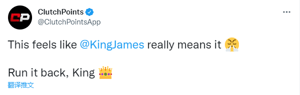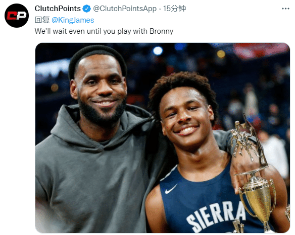 美媒ClutchPoints在詹姆斯评论区写道:我们等着你和布朗尼并肩作战;还发推写道:回来吧,国王;美媒Talkin NBA点赞球迷的言论:詹姆斯职业生涯至少会夺得5座总冠军。
