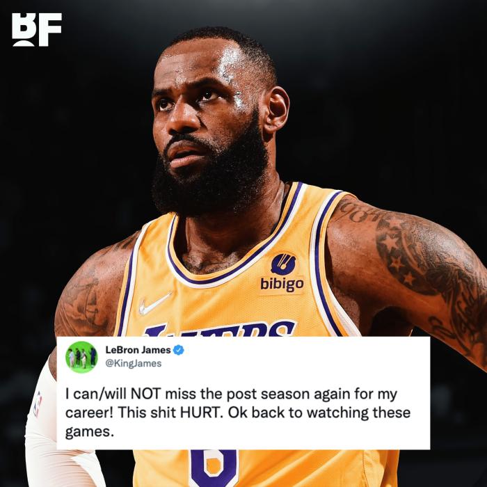 来源:JRS直播04-23 10:01JRS直播04月23日讯 ,湖人球星勒布朗-詹姆斯的承诺言论引热议,詹姆斯发推写道:剩余生涯我再也不会错过季后赛!这TM太伤心!好了!继续看比赛!