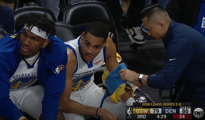惊魂!追梦格林踩到克莱后崴脚,仍坚持战斗,普尔胳膊受伤