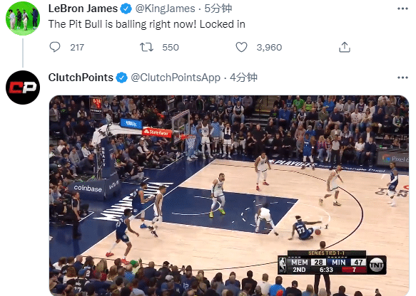 来源:JRS直播04-22 11:42JRS直播04月22日讯 ,NBA季后赛森林狼再战灰熊,G3再次大战,森林狼悍将贝弗利打出血性和侵略性,多次单挑莫兰特并且做出嘲讽莫兰特太矮小的手势;急中生智砸板空接上篮一幕引热议,詹姆斯发推盛赞:斗牛犬正在大秀特秀!锁定!