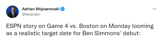 西蒙斯上一次上场比赛,还是在上赛季的东部半决赛G7,如果他在本赛季首轮G4复出,那将是他时隔309天再次登场比赛。