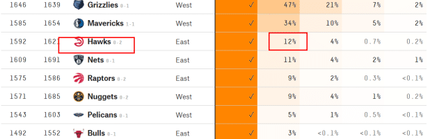 某种程度上来说,热火算是老鹰的克星了。比赛中,美媒晒出了老鹰本赛季至今的三大惨败,其中两场就是输给热火,分别输掉了24分。G2从分差来看,好歹是缩小了一些,只输了10分。0-2落后,知名数据网站538更新晋级概率,老鹰只剩下12%概率上演黑八了。