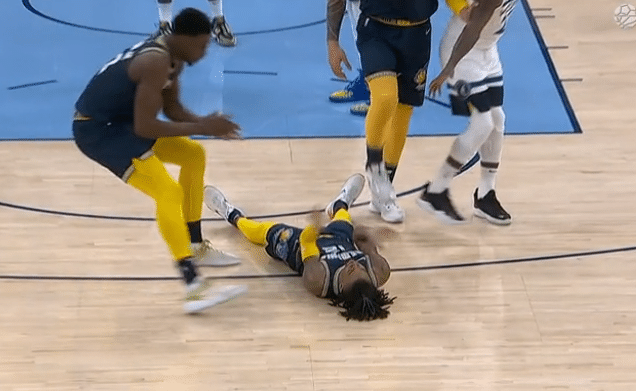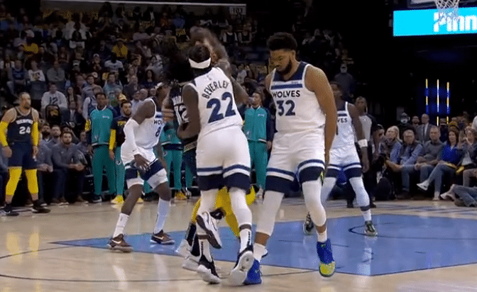 比赛开始之后,双方的火药味便非常大。开赛仅仅1分钟,莫兰特在突破时被唐斯阻挡犯规。这本是一个比较正常的防守犯规,但此时在莫兰特身后的贝弗利,却在裁判哨响之后,还用狠劲朝莫兰特的头部位置一把打去,这让莫兰特直接倒地。贝弗利还想去扶,被亚当斯一把推开。而莫兰特则在地上鼓掌给自己打气。