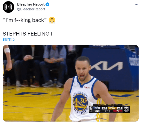 来源:JRS直播04-19 15:07JRS直播04月19日讯 ,NBA季后赛勇士再次打爆掘金,库里全场替补出战22分钟,17投12中、三分10中5轰下34分3篮板4助攻1盖帽1抢断,在场正负值+32太狠,季后赛3000分里程碑并且带队赢球,库里疯狂庆祝以及爆粗怒吼:我TM回来了;库里打得巴顿摊手跺脚,十分绝望;约基奇累计两T遭驱逐,空砍26分11篮板。