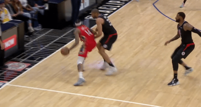第二节,鹈鹕一度领先到16分,上半场最后1分钟,快船小个阵容凑效,不过半场打完快船46-56落后10分,此节英格拉姆神勇不再,单节4投1中仅仅贡献2分。