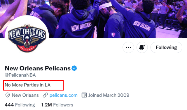洛城再无派对!鹈鹕官推霸气再改简介 先后扎心湖人快船太狠了
