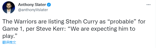 勇士官方更新伤病报告,季后赛首轮大战掘金,库里的出战状态被列为大概率出战(75%可能性);对于库里复出,勇士主帅科尔表示:一切都进行得都很顺利,我们希望他明天可以出场。而且我有充分的理由相信他的复出战会很成功。”