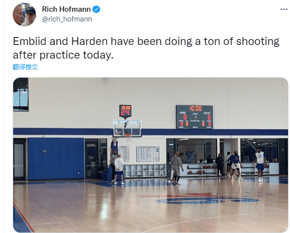 据美记者Rich Hofmann报道,今天76人全队训练之后,哈登和恩比德加练了大量的投篮,76人双巨在一些工作人员的陪练下疯狂加练投篮,这便是他们对待季后赛的态度;此前哈登表示要在季后赛做会最好版本的自己,唯一目标是为费城带来一个总冠军。