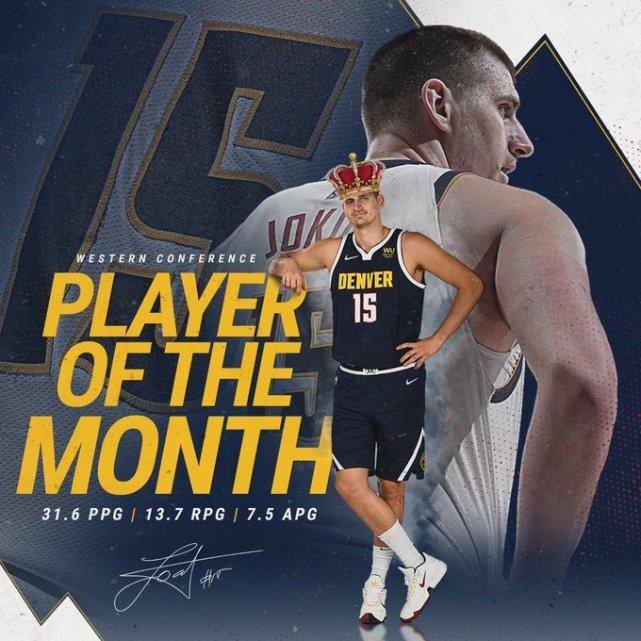 NBA官宣3-4月最佳!约基奇当选超越甜瓜 字母哥一成就历史首人