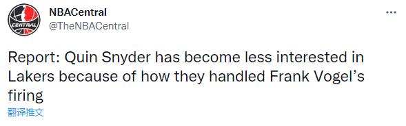 美媒还报道,爵士主帅斯奈特对湖人帅位的兴趣越来越低,因为他对湖人解雇沃格尔的方式很不满;昨天湖人刚打完收官战,沃纳罗斯基便报道沃格尔将被解雇,今天湖人官宣解雇沃格尔。