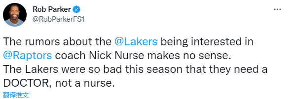 来源:JRS直播04-12 15:18JRS直播04月12日讯 ,纳斯和里弗斯也是湖人潜在新帅候选人,对于湖人选帅,NBA记者Rob Parker发推写道:传言湖人有意让纳斯当新帅毫无意义,湖人打出糟糕的赛季,他们需要一个医生,而不是一名护士。