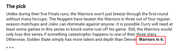 官网预测人勇士4-2淘汰掘金。