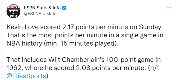 第一、乐福每分钟2.17分超越张伯伦,创造NBA历史单场每分钟最高得分;60年前张伯伦曾单场狂砍100分,每分钟2.08分,这就相当于乐福打破尘封60年的纪录。