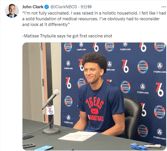 76人悍将拒绝接种第二针扎心哈登,回应无法出战首轮客场