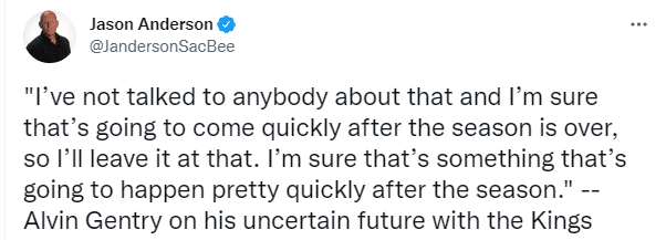 对于与国王的续约问题,金特里今天表示:我还没有和任何人谈过这件事,但我相信在明天赛季结束后,很快就会有结果。