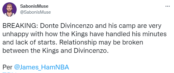 今年交易截止日,在雄鹿、快船、国王和活塞四方达交易中,迪文岑佐被交易到国王,他的合同将在赛季结束后到期。