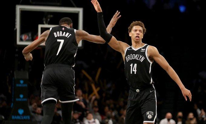 来源:JRS直播04-08 15:44JRS直播04月08日讯 ,目前篮网42胜38负排名东部第八,落后骑士1个胜场,有望以东部第七的身份参加附加赛,杜兰特和欧文更有望带队冲击总冠军。