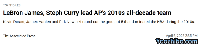 美联社评2010年代最佳阵容:詹杜库哈入选,诺维茨基榜上有名