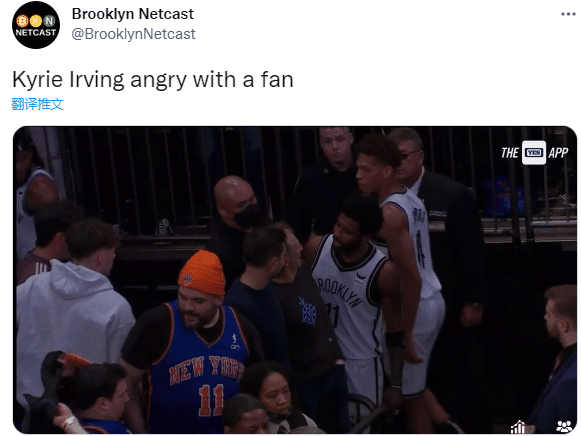 中场休息时,欧文离场时被纽约球迷惹怒,返回更衣室途中折返,和球迷发生争吵口角。