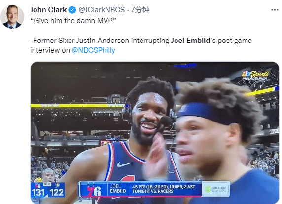 恩比德45+13狂刷纪录!冲击两项年度大奖,前队友:把MVP给他