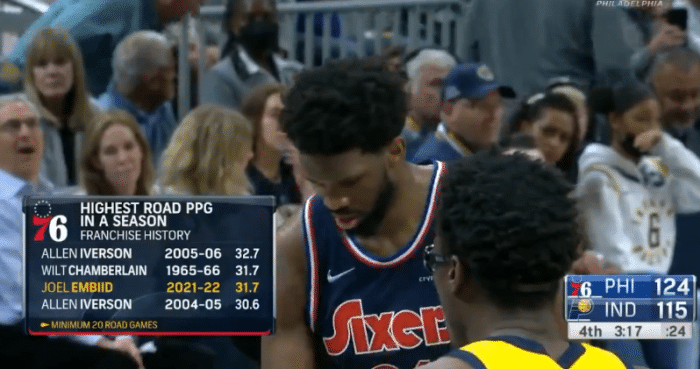 第四、恩比德本赛季客场作战场均轰下31.7分,比肩张伯伦和艾弗森,与张大帅并列队史第二位。