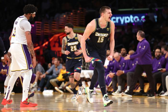 约基奇狂刷6大纪录!38+18摧毁湖人,赛后詹皇浓眉大笑拥抱他
