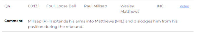 第四节还剩13秒,字母哥执行关键罚球,米尔萨普争抢篮板时推倒了马修斯,这应该吹罚米尔萨普犯规,这是一次关键漏判。