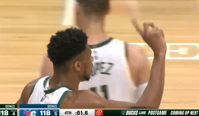 生死时刻,哈登后撤步三分打铁不中,恩比德抢到进攻篮板,上篮时惨遭字母哥大帽扇飞,裁判第一时间吹罚字母哥防守干扰球,记分牌比分变成118平;字母哥不判判罚,示意回放,裁判回放之后确定字母哥盖帽有效,76人被扣掉2分,最终雄鹿客场拿下胜利。