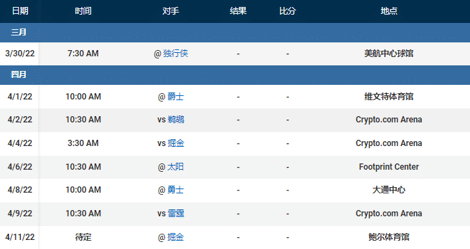 所以这样的情况下,使得湖人的排名正式跌出了西部前十名。本来湖人附加赛的希望还是很大的,毕竟身后的开拓者、国王和马刺整体的实力并不强,但没想到近期马刺的一波9战7败,期间只赢了骑士和猛龙,以及波波维奇执教的马刺强势爆发,一波4连胜直接抹平了和湖人之间的差距。这样的情况下,湖人跌出了前十,而马刺升至附加赛区域,同时他们接下来的赛程要比湖人轻松很多。