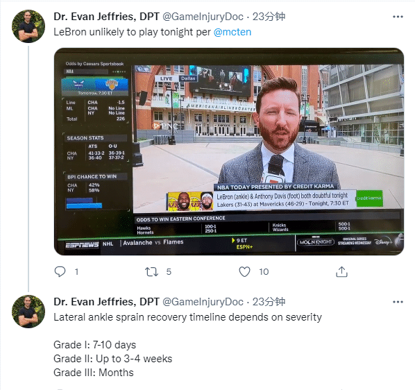 上一场湖人惨遭鹈鹕23分大逆转,詹姆斯在第二节遭遇90度崴脚的伤病,带伤苦战41分钟轰下39分仍输掉比赛;赛后詹姆斯直言崴脚这一刻很可怕,腿部剧痛,并且表示不想因伤缺席比赛。