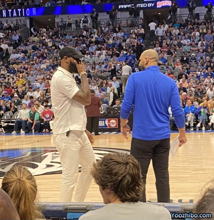 今日一战,詹姆斯和浓眉都是身穿便装坐在场边观战。