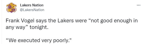 赛后谈到本次失利,沃格尔表示:不可接受,我们在各个方面都做的不好,我们的执行力太糟糕,包括球员和教练每个人。
