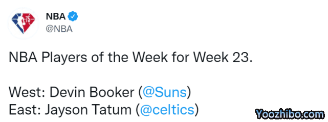 NBA公布周最佳!塔图姆同月3次当选比肩詹皇,布克重现纳什成就
