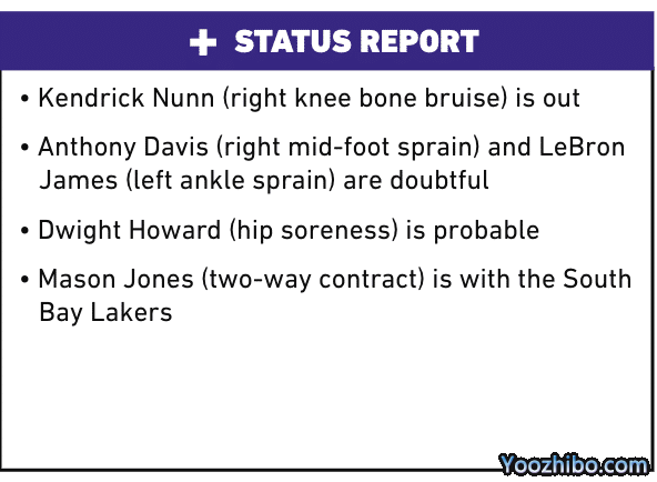 浓眉已经参加队内全部的训练,中足扭伤后首次被列为出战成疑(小概率出战),球队将看看的身体反应如何;浓眉复出倒计时,詹姆斯又伤了,脚踝扭伤并且肿胀。