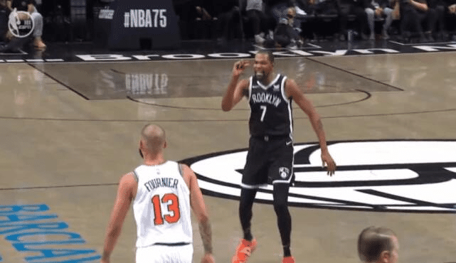 杜兰特曾在比赛中做“太小”的手势,来嘲讽尼克斯的富尼耶。欧文还在训练中复刻过杜兰特的这一手势,没想到嘲讽别人的杜兰特,也被后辈嘲讽了一回。