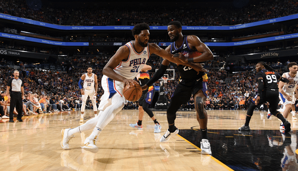 第二节还剩下7分18秒的时候,哈登换下小乔丹,一上来哈登的三分球投丢,同时进攻端在突破过程有打到沙梅特的脸,被吹一级恶意犯规,太阳队两罚一掷。哈登突破之后的上篮被布克大帽但对手犯规,哈登两罚全中。上半场的哈登得到12分3篮板4助攻的数据,76人一度领先15分,但被太阳追到分差只有4分。