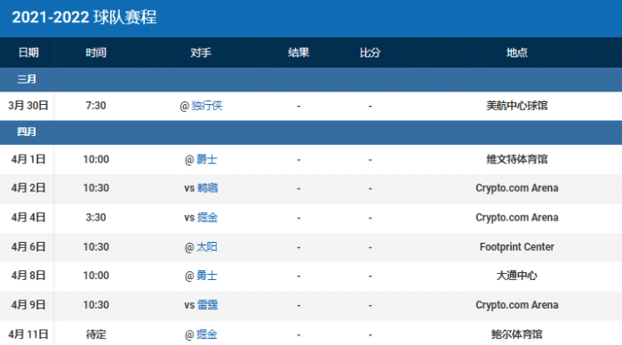 当然湖人的赛制难度还是很大的,毕竟是联盟第三高的难度,除了5天之后迎战鹈鹕之外,接下来湖人的对手还有独行侠、爵士、掘金、太阳、勇士、雷霆和掘金。
