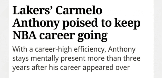安东尼自曝退役计划!一数据更胜詹皇 承认湖人赛季不如预期