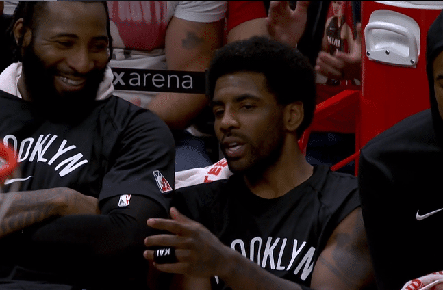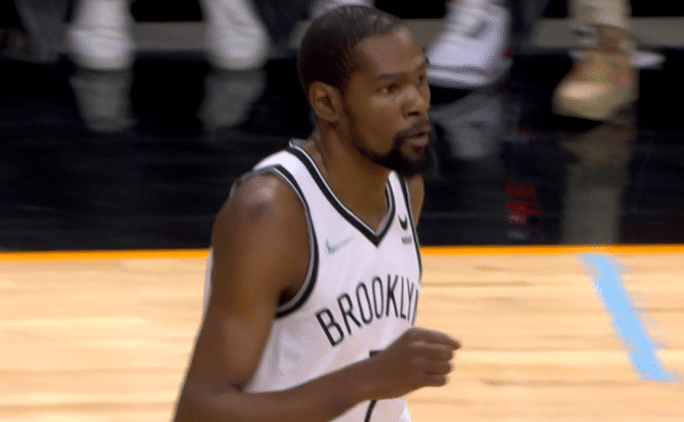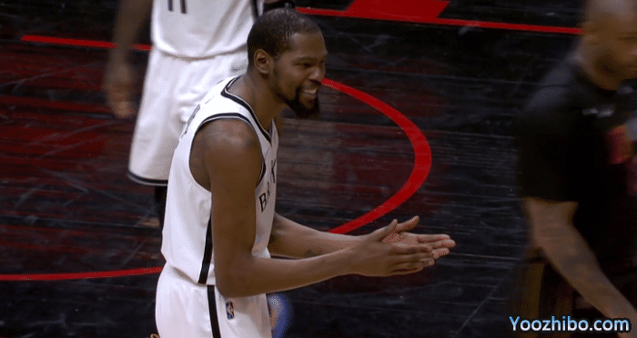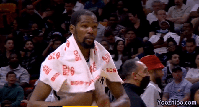 第二节,两队开场僵持不下,打着打着热火哑火,篮网火力猛烈,欧文一打多连续得分,单节贡献10分,杜兰特招牌中投以及造犯规得分,单节也有10分,篮网大比分领先,杜兰特仍十分拼搏,倒地拼抢地板球,摔到腰部很痛苦,所幸无受伤,此节杜兰特不满判罚吃到技术犯规。