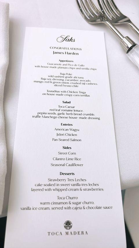 哈登的朋友晒出了庆功宴的菜单,看上去非常丰盛。自从哈登加盟76人以来,他已经打过12场比赛,场均贡献22.5分7篮板10.2助攻。这12场比赛,76人9胜3负。目前,76人排名东部第三,距离东部第一的热火只有1.5个胜场的差距。