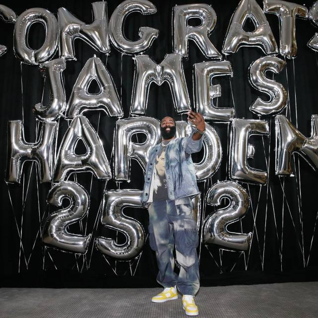 视频中,哈登冲着镜头说:“我在Saks酒店,我的家人给我送上惊喜,祝贺我升至三分榜的第三,我之前完全不知情,这儿的布置真的太棒了!”现场还布置了一块海报板,上面是哈登生涯至今的经典瞬间和重要成就,哈登也开心地和海报合影。