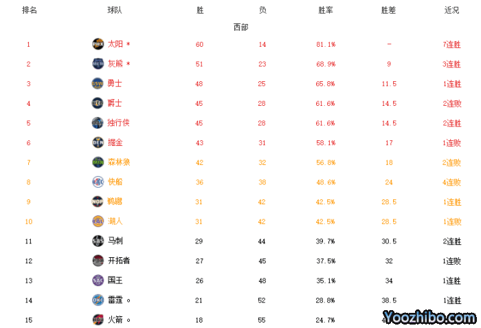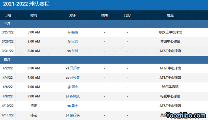 来源:JRS直播03-26 16:27JRS直播03月27日讯 NBA常规赛进行到最后的冲刺阶段,西部季后赛附加赛的席位争夺非常激烈,目前鹈鹕和湖人都是31胜42负,分别排在西部第9和第10名,而第11名的是马刺,他们与身前的鹈鹕和湖人还差2个胜场。3支球队都只剩下9场比赛,将会争夺2个附加赛的席位。很显然马刺目前处于被动中,但他们接下来的依旧有机会。