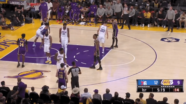 詹姆斯缺席,湖人首节领先76人3分!奇兵单节5中5轰13分
