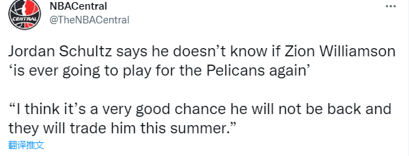 对于锡安的情况,美记者Jordan Schultz 认为锡安不会重返鹈鹕,今夏鹈鹕将会交易他。