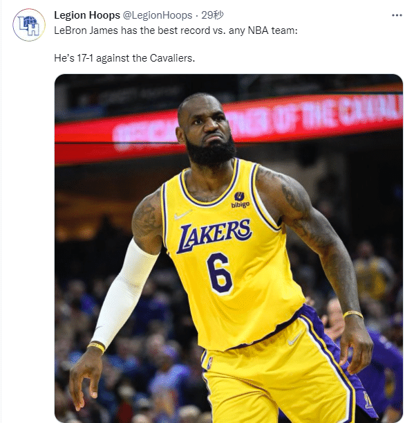 目前詹姆斯对阵骑士的战绩是17胜1负,职业生涯对阵任何球队的最好战绩;昨天赢球后,詹姆斯已经提前达成连续18年场均25+的历史第一神迹,而且场均得分达到30分,力压恩比德和字母哥位列联盟第一,不过三人的差距并不大,得分王之争依旧激烈。