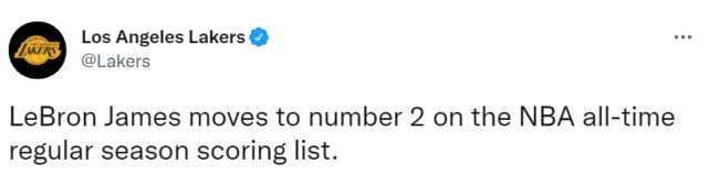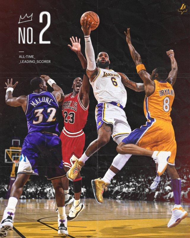 詹姆斯进入联盟得分榜前五后,近年来陆续超越名宿。2019年3月7日,詹姆斯得分超过乔丹,升至历史第四位;2020年1月26日,詹姆斯得分超过科比,升至历史第三位。如今,他又超过了马龙,来到历史第二的位置上,他距离得分王的天花板越来越近了。