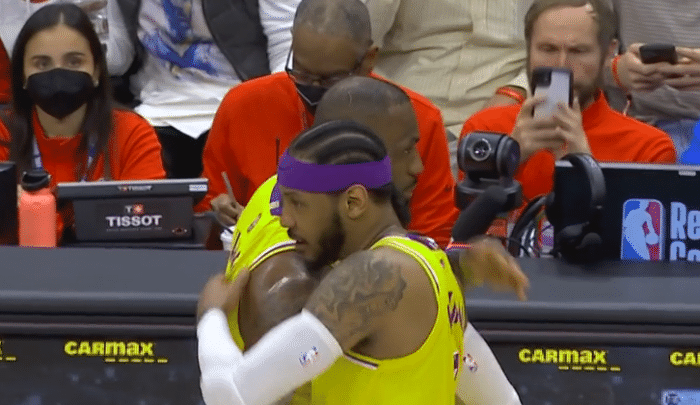 暂停回来后,斯坦利-约翰逊送助攻,詹姆斯上篮得手,生涯得分超越马龙升至历史第二位,排在第一位的是贾巴尔,生涯总得分为38387分,现场的所有的球迷起立为詹姆斯鼓掌欢呼,这一幕让人看得十分感动,镜头给到詹姆斯的时候,场边一位美女球迷的小眼神十分抢镜,有网友说道:这眼神爱了爱了。