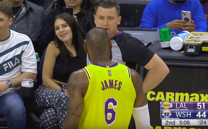 历史第二!恭喜詹姆斯,所有人起立欢呼,场边美女球迷小眼神抢镜