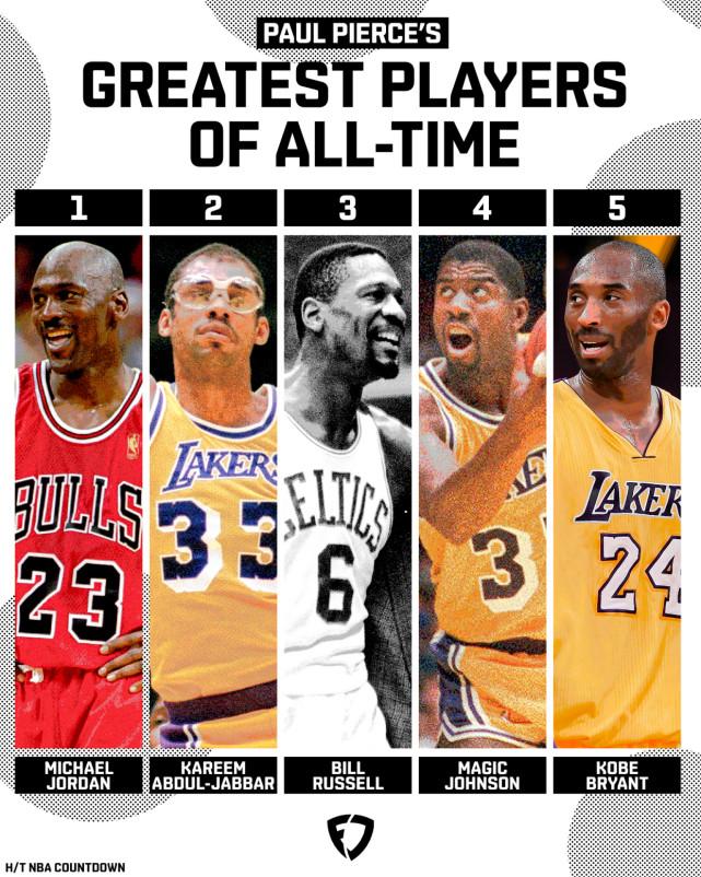 两年过去了,皮尔斯也改口了。这一回,他把詹姆斯、奥尼尔和队友加内特放进前五,换掉了拉塞尔、贾巴尔和科比。