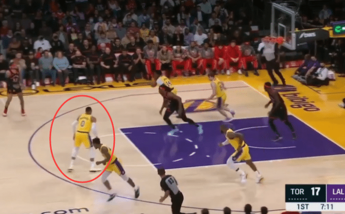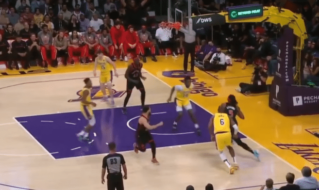 此时湖人球员的心态也已经完全崩盘。詹姆斯在防守中,被对手直接一步过,老詹也没有下一步的防守动作。而威少的防守表现则更令人沮丧。在一次防守中,威少在对手进攻完成之后,才慢吞吞出现在画面中。而当湖人推起反击,威少还是在溜达,根本不想打了。